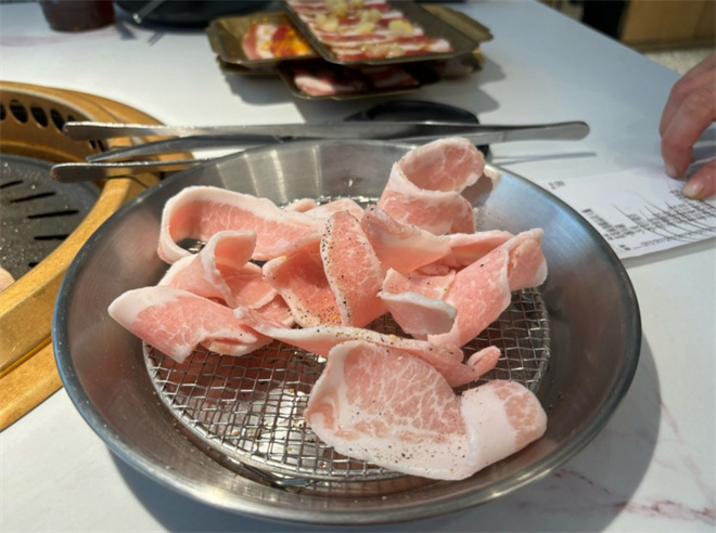 花味烤肉主打的精選厚五花肉、烤澳洲吾桑格以及花津浦豬梅肉都是點(diǎn)單率超高的人氣單品,雖然精選厚五花肉看上去厚厚的一塊,脂肪足足的,但是烤過后,外面金黃爽脆,里面鮮嫩多汁,蘸上他們家的胡椒粉、包上一片生菜,是再好不過的選擇。如果想要大口吃肉,可以點(diǎn)他們家的花津浦豬梅肉,腌制過的豬肉特別入味,咬在嘴里回味無窮。